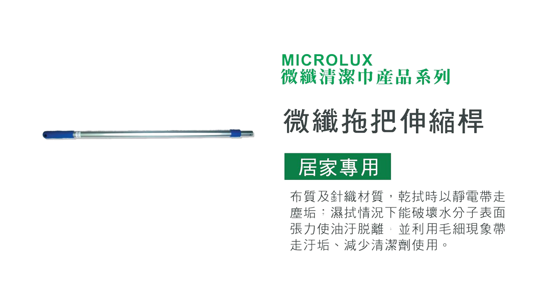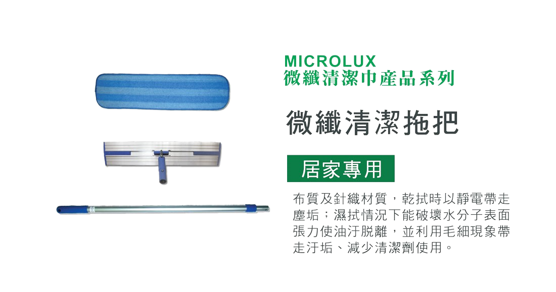 微纖拖把組適用於大面積(如壁面、天花板、各種材質地板..)